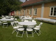 Heggedal Hovedgård har også et stort flott uteareal hvor vi har noe hagemøbler ute. Det er stor plen både foran og bak huset. Vi er også behjelpelig med utleie av telt, grill, ekstra bord og stoler for ute-arrangement.