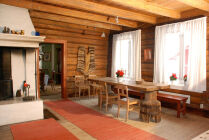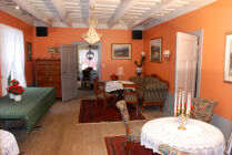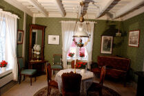 Det ene hjørneværesle er i «klunkestil», og en annen stue i tilnærmet empire. Så har vi «bryggerstua»- en riktig bondestue med stor peis, langbord og slagbenk.